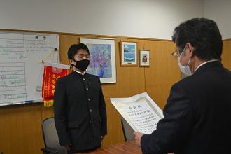 を授与していただきました。柴田君の善行は称賛に値するとても素晴らしいことだと思います。