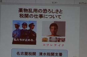 内容は、まず清水税関支署に御用意いただいた「薬物乱用の恐ろしさと税関の仕事について」のDVDを視聴し、違法薬物の種類、薬物乱用による身体的な影響、薬物を使用していない人への誘惑にどのように対処をしたらよいかについて等学びました。