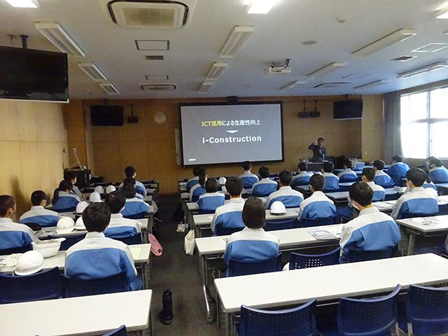 本日、都市基盤工学科1年生を対象にICTに関する現場見学会を実施しました。生徒は最先端技術を興味深く聞き、熱心に体験をしました。