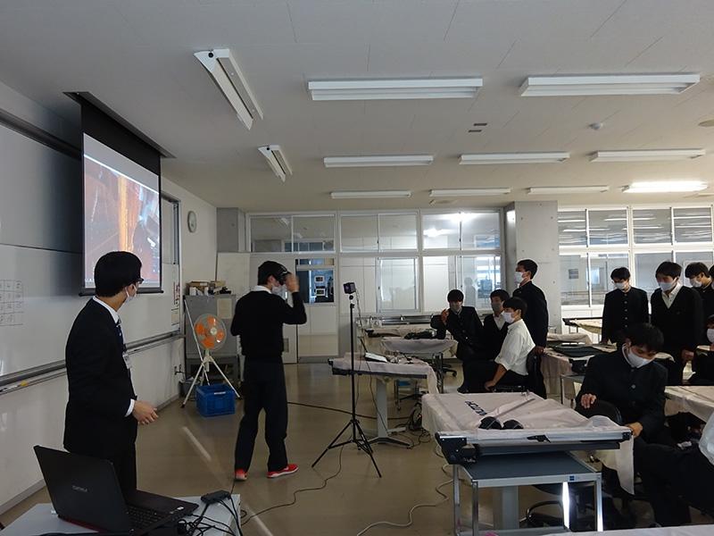 本日、都市基盤工学科3年生を対象に出前講座を実施しました。生徒は、就職先の仕事で活用できるようVR体験を行いました。
